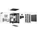 Skříň podporuje všechny standardní formáty základních desek včetně moderních řešení se zadními konektory jako ASUS BTF, MSI Project Zero a Gigabyte Project Stealth. Chytrý design umožňuje snadnou výměnu pozic napájecího zdroje a rámečku disků.