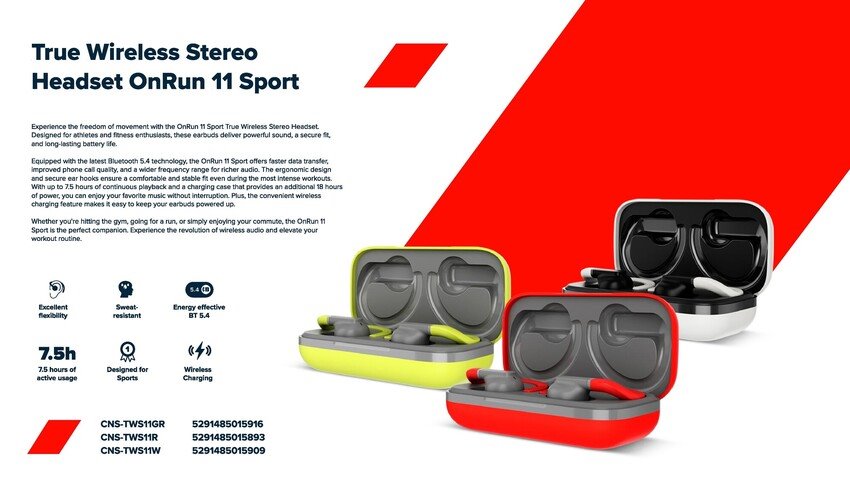 Sluchátka OnRun 11 Sport jsou navržena speciálně pro sportovní nadšence. Díky lehké konstrukci, bezpečnému uchycení a odolnosti proti vodě jsou tato sluchátka ideální volbou pro sportovce, kteří vyžadují nejlepší výkon a pohodlí.