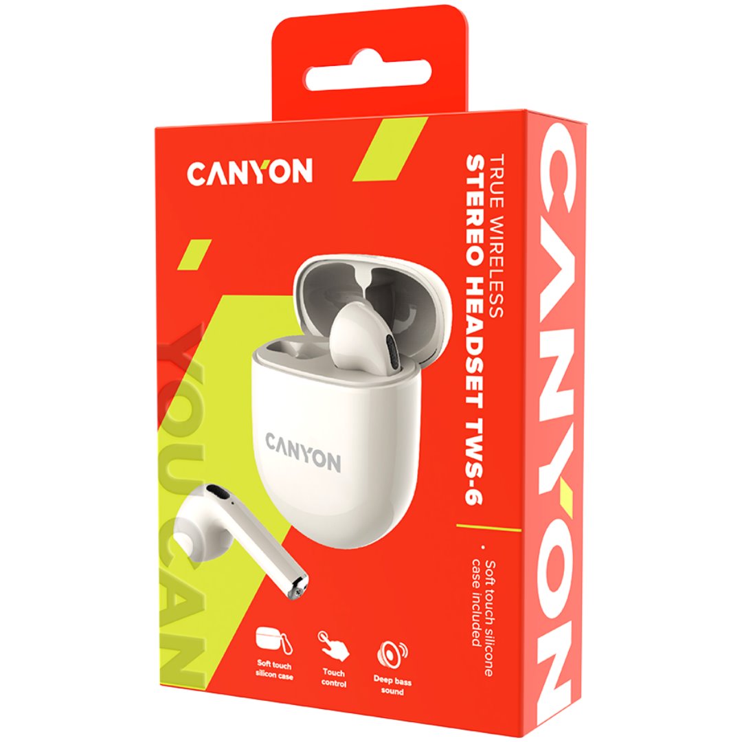 Bezdrátová stereo sluchátka True wireless TWS-6, béžová
