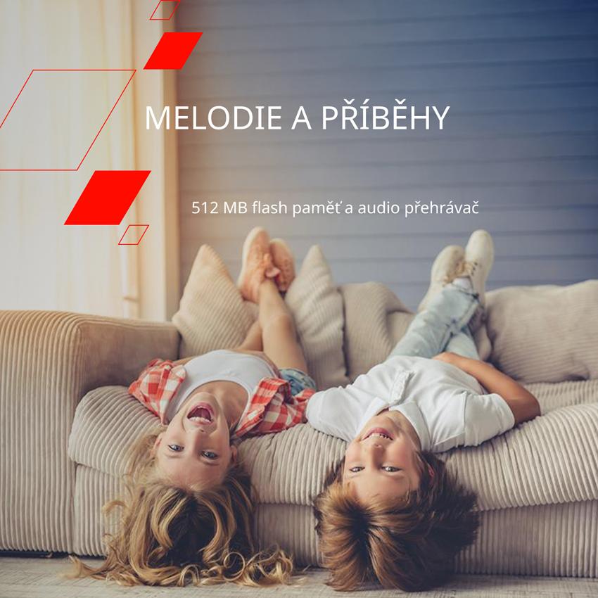 Svět hudby, audioknih a oblíbeného obsahu přímo na zápěstí vašeho dítěte! Díky 512 MB flash paměti a vestavěnému přehrávači si může užívat svou oblíbenou zábavu kdykoli a kdekoli - ať už při dlouhých cestách autem, klidných chvílích, nebo jako odměnu za dobře odvedenou práci.