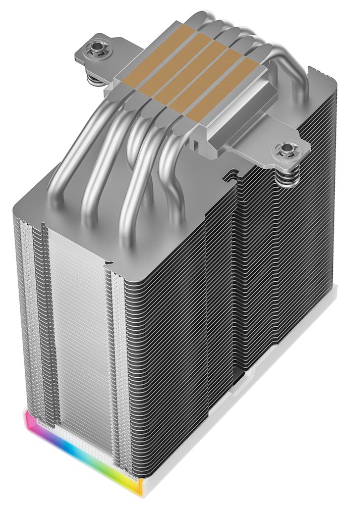 Chladič využívá osvědčenou konstrukci série AK s pěti tepelnými trubicemi O6 mm v tower uspořádání s přímým kontaktem a unikátním matrixovým designem lamel. Offset uspořádání heatpipes zajišťuje vynikající kompatibilitu s vysokými RAM moduly a poskytuje volný přístup ke všem paměťovým slotům. Součástí je výkonný 120mm FDB ventilátor FK120 s ARGB LED podsvícením a regulací otáček 500–1850 RPM.