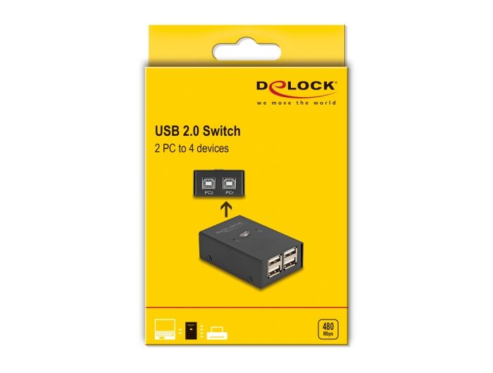 Delock Přepínač USB 2.0, 2 PC na 4 zařízení