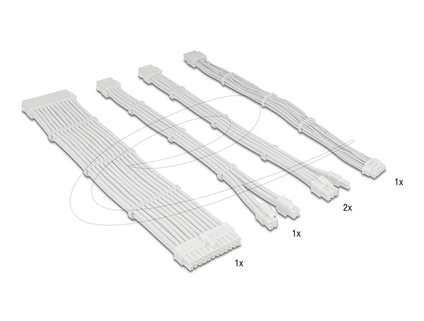 Delock Sada prodlužovacích kabelů pro zdroj (PSU), 30 cm, 5 kusů, opletené s kabelovými hřebeny, bílá