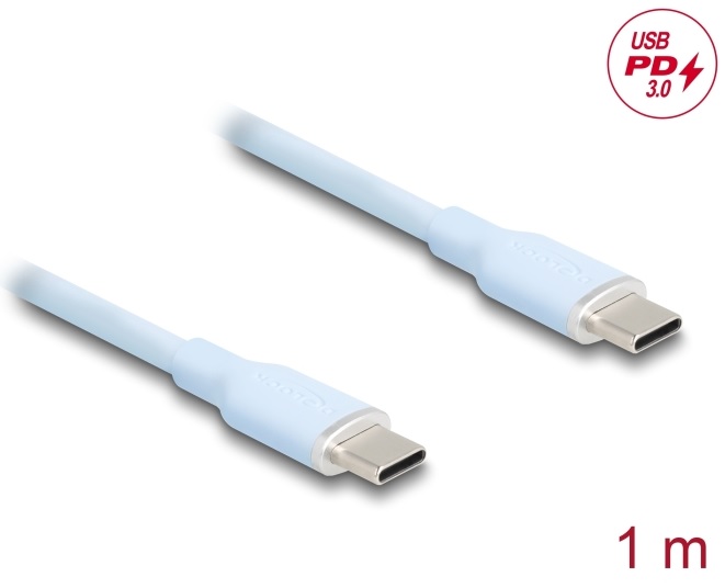 Delock USB 2.0 kabel USB Type-C™ samec na samec PD 3.0 60 W 1 m modrý Silikon