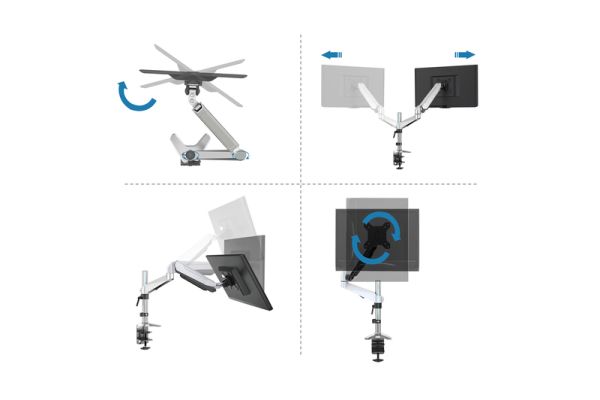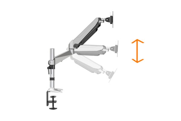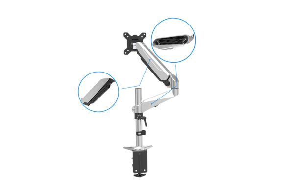 Monitory s úhlopříčkou 15 "- 27" lze individuálně upevnit pomocí konzoly na plochu. Monitor lze otočit, naklonit nebo otočit. Integrovaná pneumatická pružina usnadňuje nastavení výšky. Díky upínacímu přípravku a rychlému uvolnění je instalace rychlá a snadná.