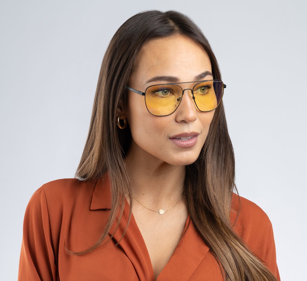 Kancelářské brýle s jantarovými skly a jedinečným designem, určené zejména pro venkovní nošení či práci na počítači ve velmi světlém prostředí. Blokují 65 % modrého světla a 100 % ultrafialového záření, díky čemu minimalizují zatížení očí a celkovou únavu. Odolná nerezová ocel zajišťuje lehké, ale přesto pevné nošení.