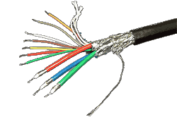 Kabel: 3x koaxiální + 7 žil, 2x stíněné jako celek(fólie + síťka);