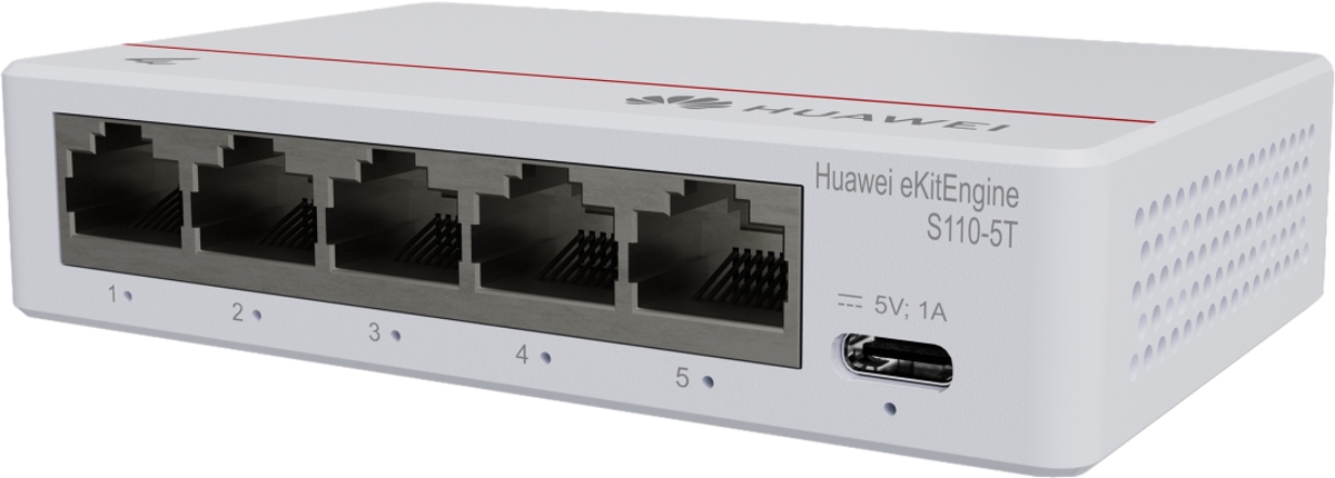 Huawei S110-5T je spolehlivý nemanagovatelný L2 switch s (5) Gbit porty. Využívá pasivní chlazení, takže nabízí zcela bezhlučný provoz vhodný pro kancelářské prostředí. Napájí se přes USB-C port a jeho maximální spotřeba energie je 4W.