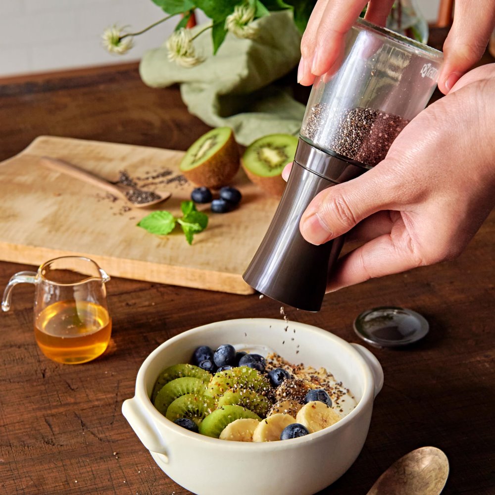 Mlýnek mele vše od hrubého až po velmi jemné podle požadovaného výsledku a plánovaného způsobu přípravy. Díky šetrnému mletí jsou semena jemně drcena a mohou rozvinout svou plnou chuť.