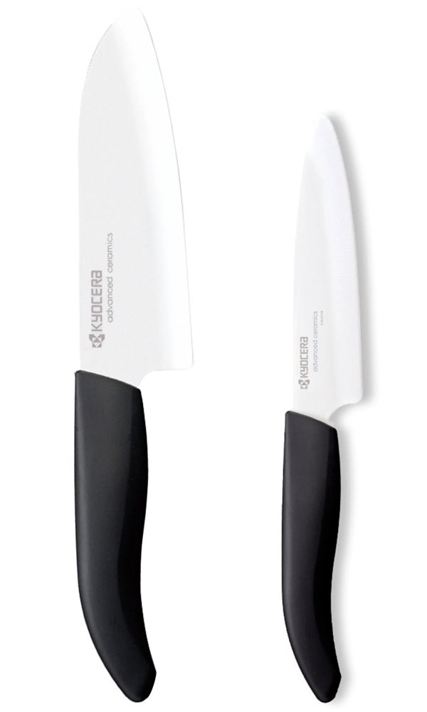 Sada keramických nožů Revolution obsahuje japonský kuchařský nůž Santoku (14 cm) a nůž na zeleninu a ovoce (11 cm). Součástí této sady je elegantní a praktický stojan z měkkého plastu, který pojme 6–8 kuchyňských nožů.Blok na nože je vyroben z měkkého plastu (soft-touch) a krásně vypadá také prémiový pásek z nerezové oceli s vygravírovaným logem Kyocera. Údržba je snadná díky odnímatelné horní části se štěrbinami.