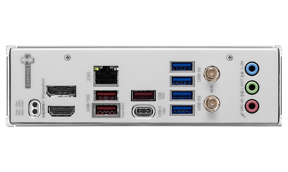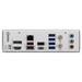 Zadní panel obsahuje HDMI 2.1 a DisplayPort 1.4 s podporou 4K rozlišení při 60 Hz pro využití integrované grafiky procesorů AMD Ryzen s GPU.