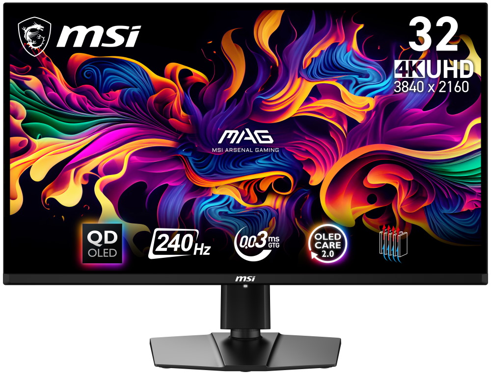 Monitor kombinuje nejmodernější QD-OLED panel s úhlopříčkou 31,5" a rozlišením 4K Ultra HD 3840 × 2160 bodů pro dokonalou kvalitu obrazu. Díky extrémně rychlé odezvě 0,03 ms GTG a obnovovací frekvenci až 240 Hz poskytuje konkurenční výhodu v rychlých hrách.