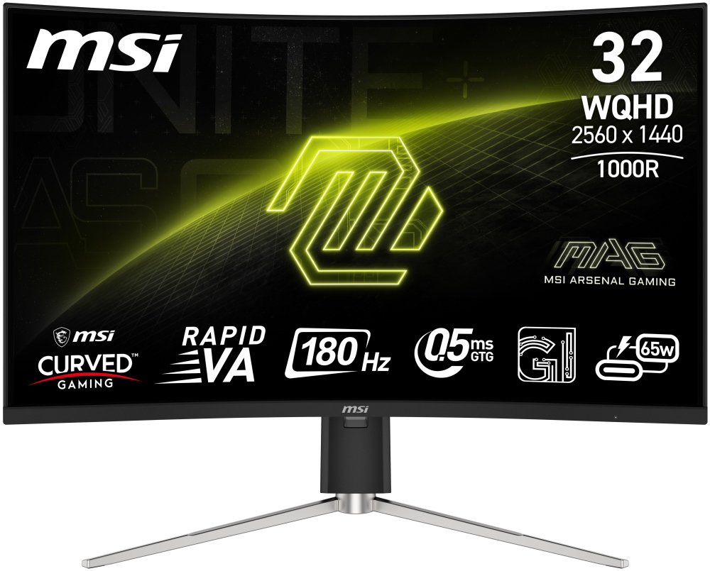 MSI Gaming MAG 325CQRF QD E2/ 31,5" zakřivený/ 2560x1440 / VA LED/ 0,5ms/ 180Hz/ 300cd/m2/ 3500:1/ HDMI/ DP/ VESA/ čern