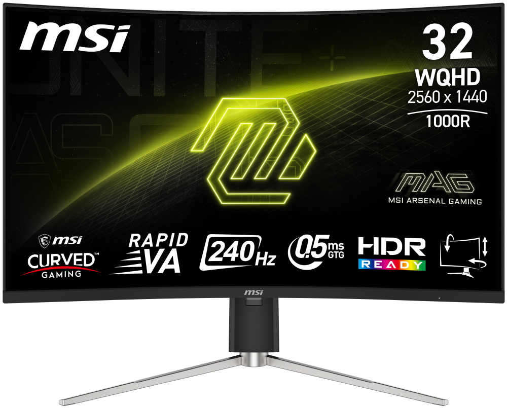 MSI Gaming MAG 325CQRF QD E2/ 31,5" zakřivený/ 2560x1440 / VA LED/ 0,5ms/ 240Hz/ 300cd/m2/ 3500:1/ HDMI/ DP/ VESA/ čern