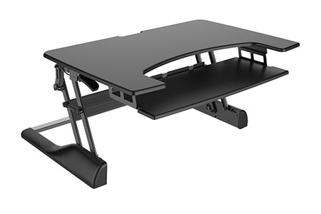 Použití: Po umístění na stůl získáte snadno nastavitelný držák, umožňující ergonomické přizpůsobení výšky klávesnice / monitoru jak pro práci v sedě tak i ve stoje. Horní polici je možno použít jak na umístění monitoru, tak pro jiný účel.;