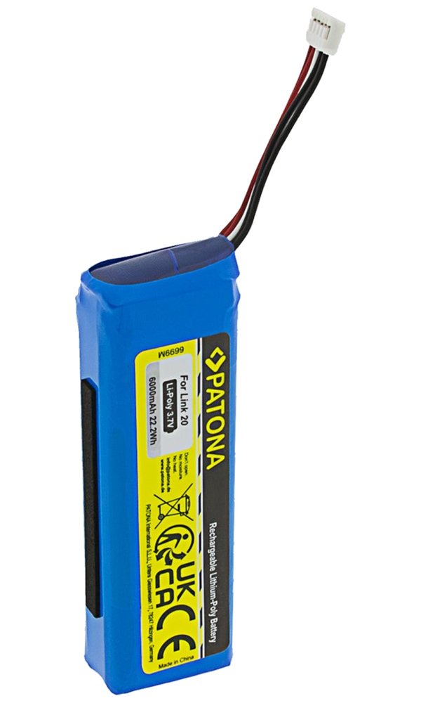 Kompatibilní baterie pro reproduktor JBL Link 20. Všechny baterie PATONA jsou vyráběny podle nejvyšších evropských standardů kvality a vyznačují se extrémní životností. Baterie mají všechny elektronické bezpečnostní prvky a mohou být také nabíjeny z původního zdroje.