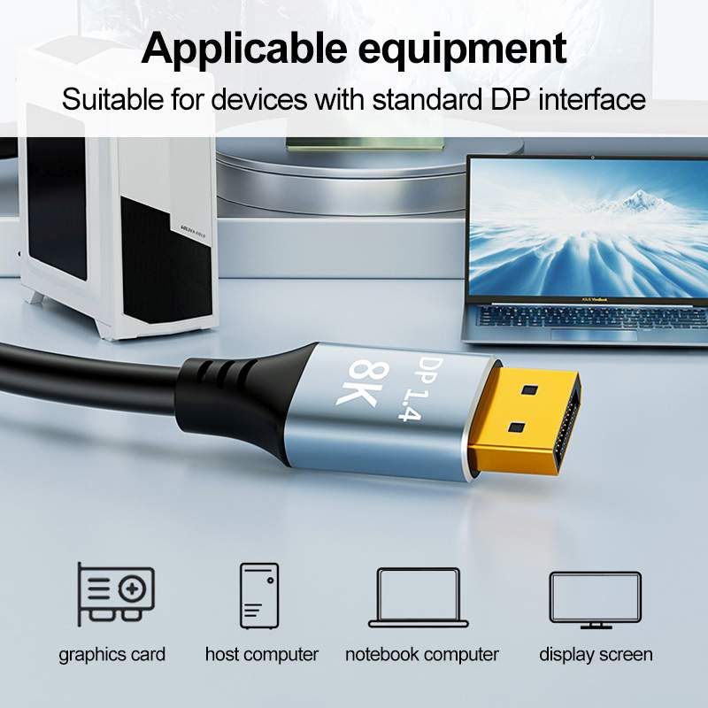 Kabel je vybaven standardem DisplayPort 1.4 a poskytuje obzvláště vysokou šířku pásma, ideální pro plynulé přehrávání obrazu bez trhání obrazovky nebo trhání při hraní her a rozlišení ostré jako břitva s rozlišením až 8K nebo 4k.