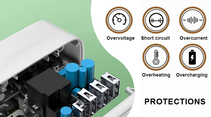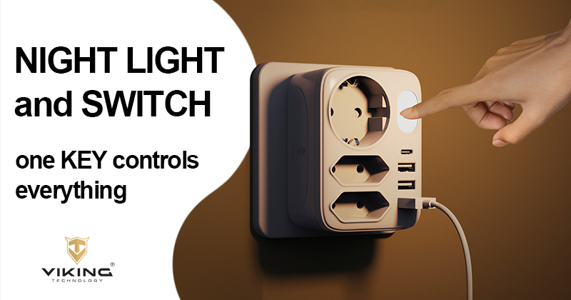 Síťový adaptér Viking AC34/Output:3xAC,3xUSB-A,1xUSB-C/LED světlo/zásuvka typu F a C