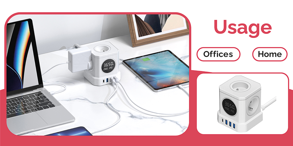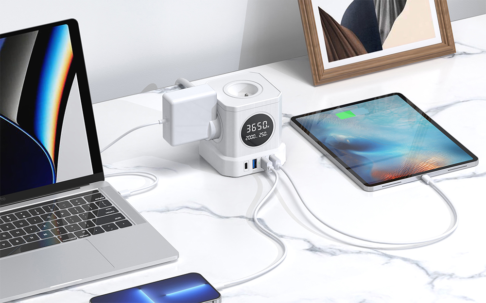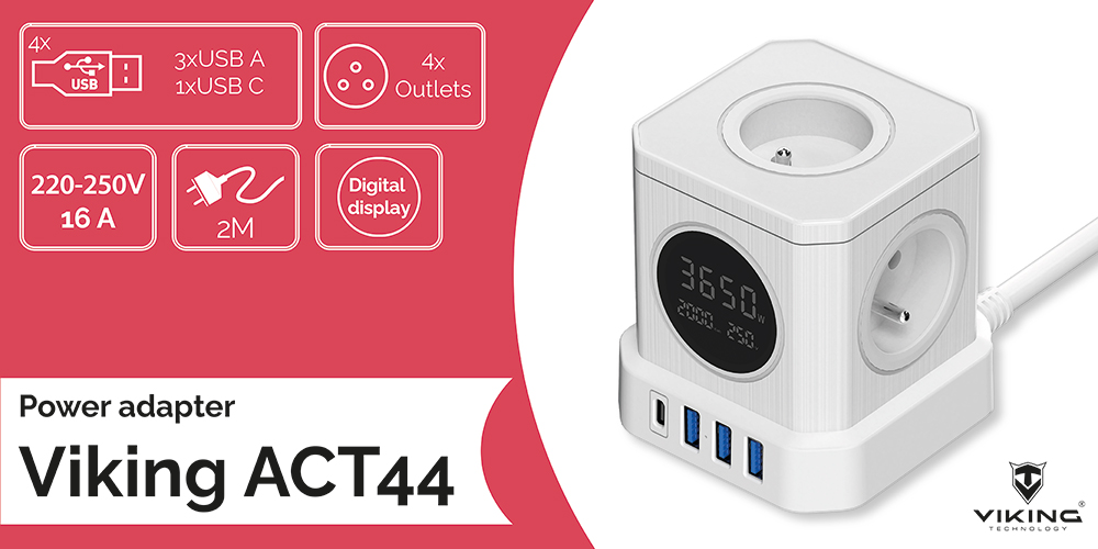 Síťový adaptér Viking ACT44/Output: 4xAC, 3xUSB-A, 1xUSB-C/výkon až 4000W/ ON/OFF tlačítko