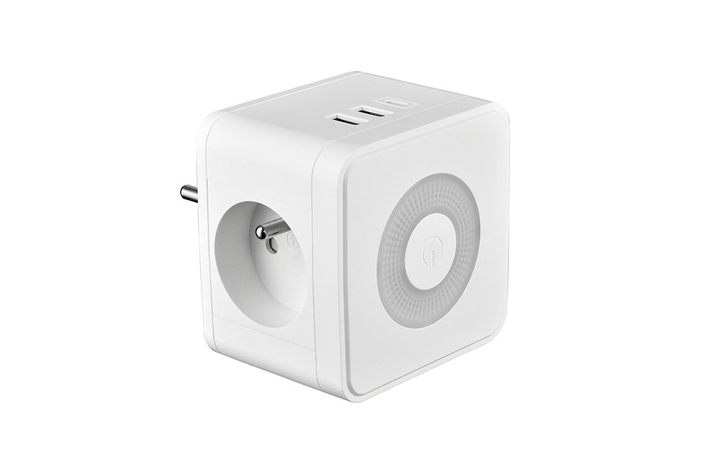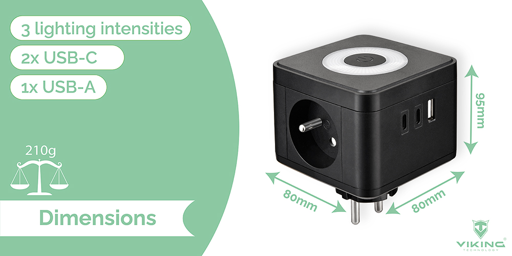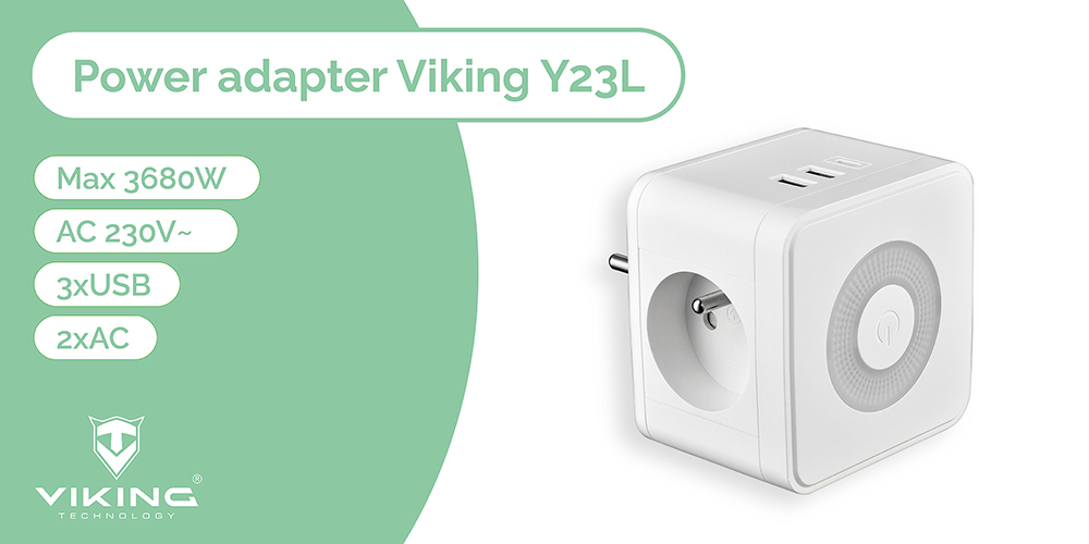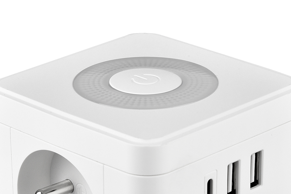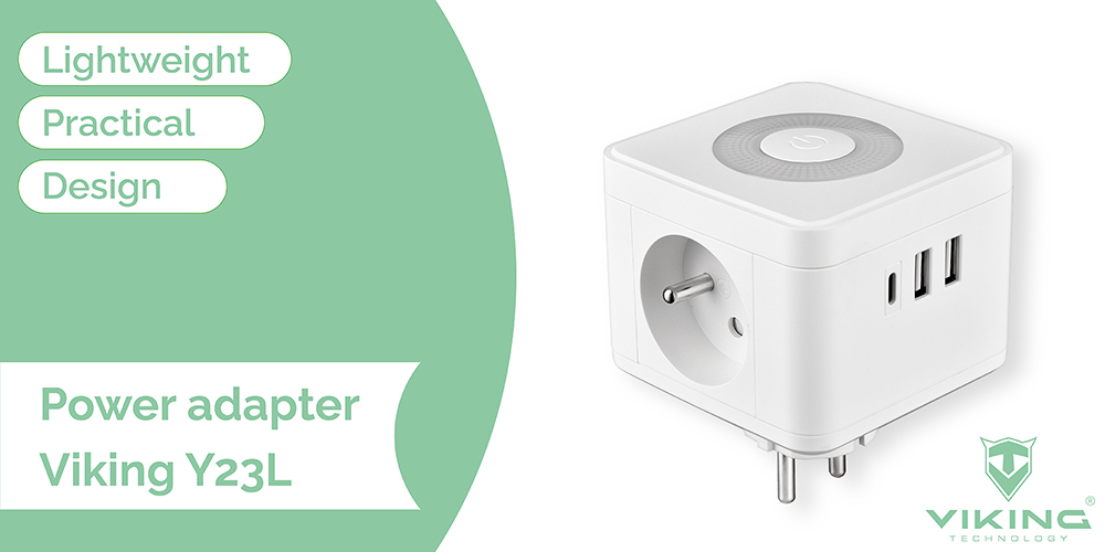 Síťový adaptér VIKING Y23L, bílá/Output:2xAC,1xUSB-A,2xUSB-C/dotykové LED světlo