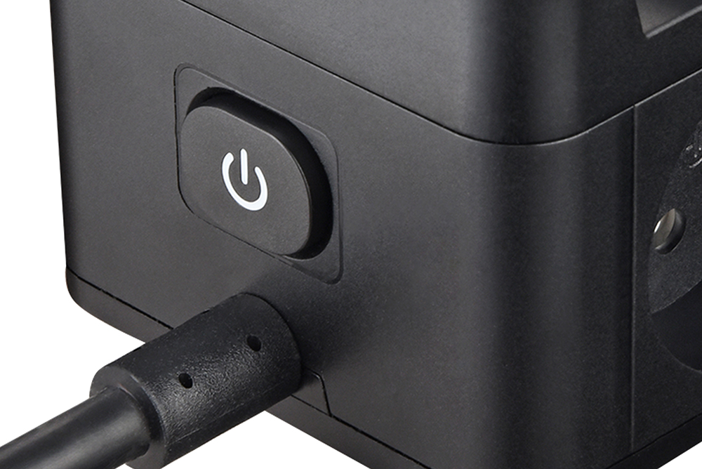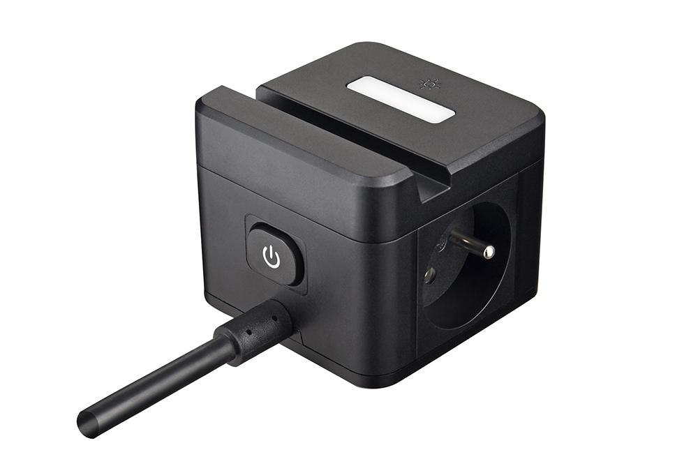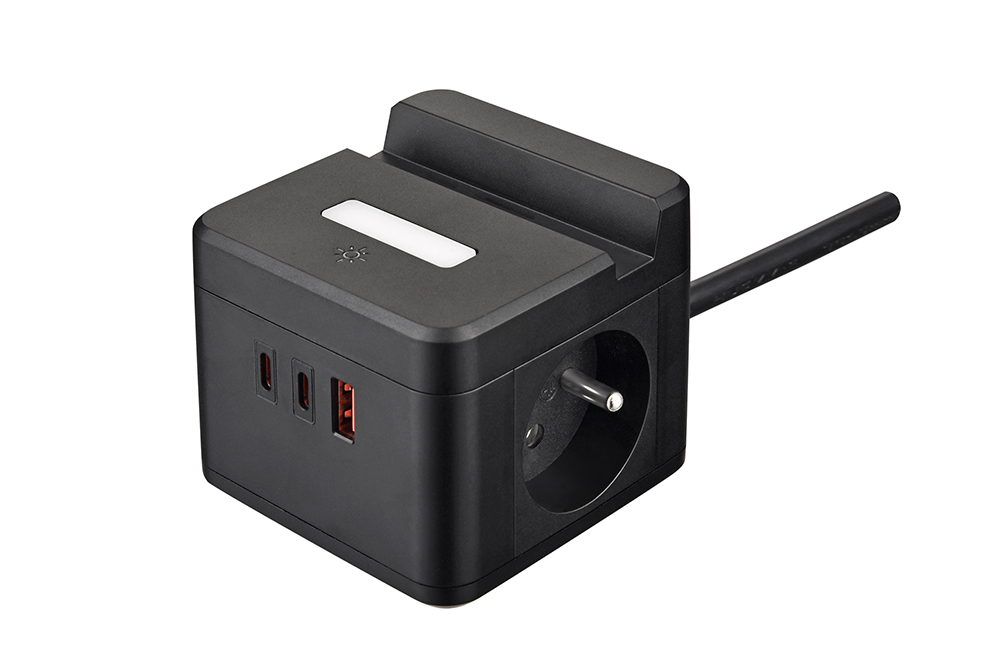 Síťový adaptér VIKING YC23H, černá/Output:2xAC,1xUSB-A,2xUSB-C/držák na mobil/LED světlo/1,4m kabel