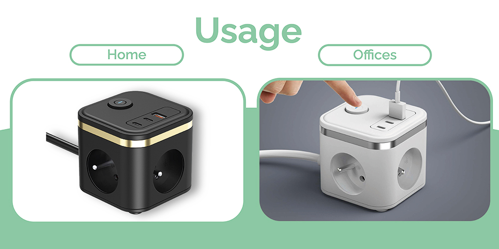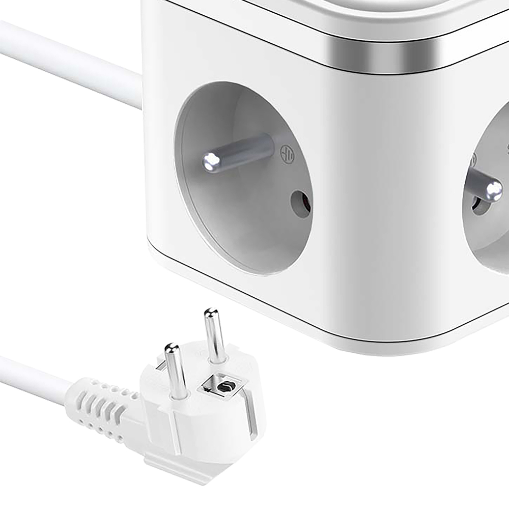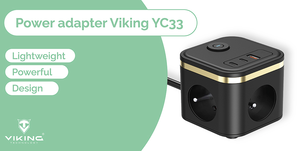 Síťový adaptér VIKING YC33, bílá/Output:3xAC, 1xUSB-A,2xUSB-C/Tlačítko ON/OFF/1,4m kabel