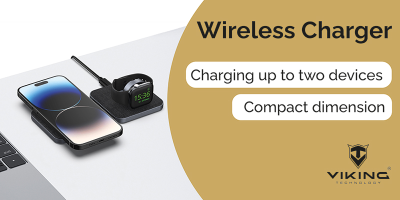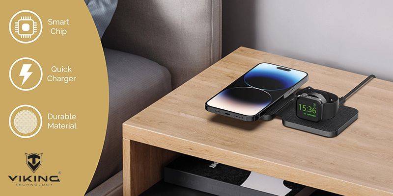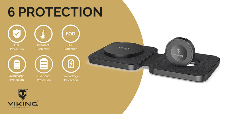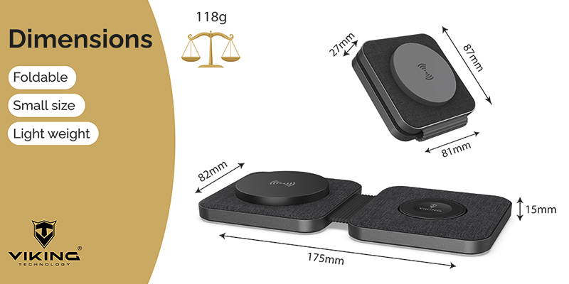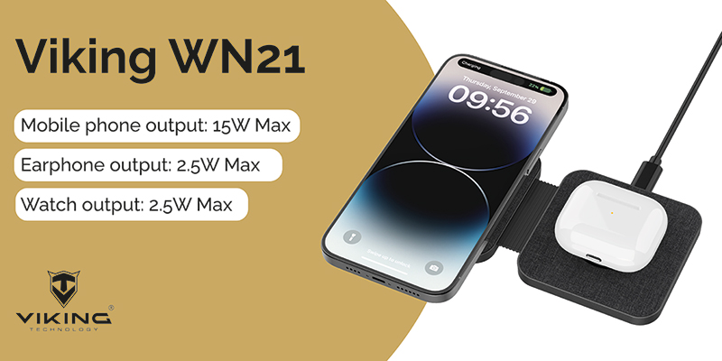 Skládací wireless nabíječka Viking WN21/Input: 1.USB-C/nabíjení hodinek a sluchátek/1m kabel UCB-C