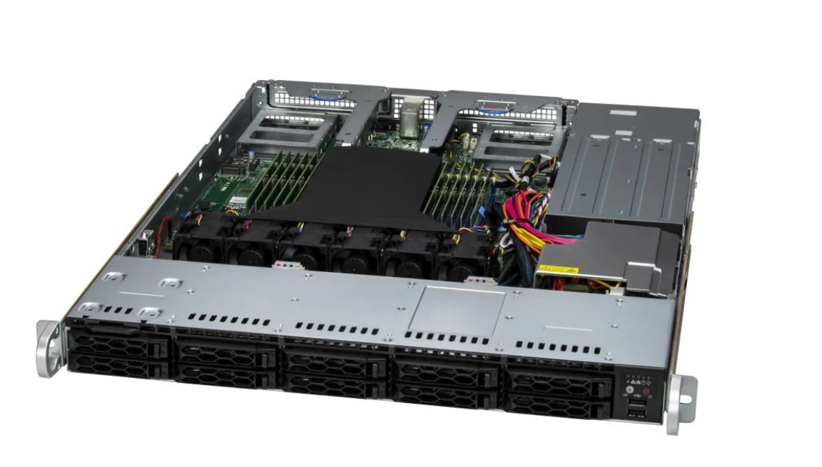 SUPERMICRO 1U server S-1115CS-TNR, Turin 9135 CPU, 12x 32GB DDR5-6400, 4x SSD 2.5" NVMe PCIe4 960GB, AIOM 2-Port 25GbE