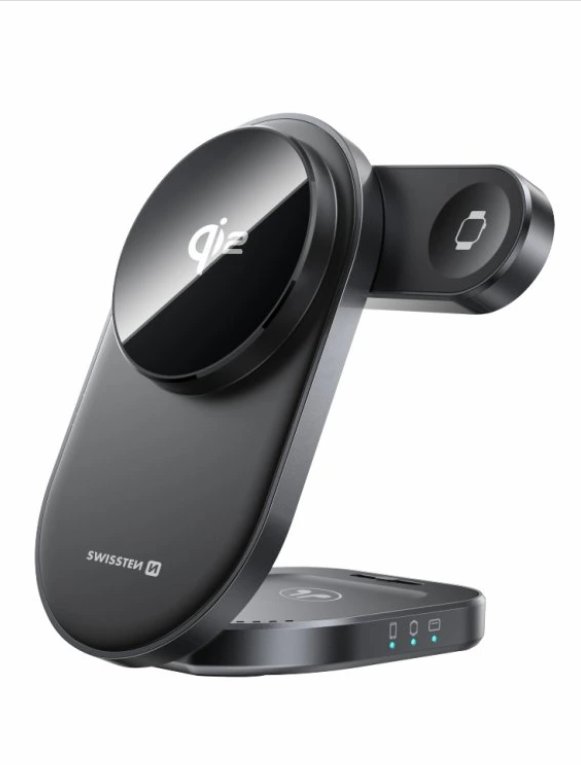 SWISSTEN SKLÁDACÍ BEZDRÁTOVÁ Qi2 NABÍJEČKA MagBase 3v1 ČERNÁ (kompatibilní s MagSafe)