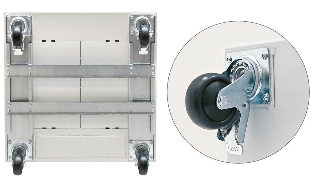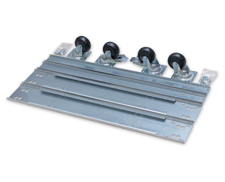 Maximální doporučená celková nosnost při použití této sady činí 450 kg. Po instalaci se výška rozvaděče zvýší o 111 mm. Sada obsahuje 2 kolečka s brzdou pro zajištění stability na místě a 2 kolečka bez brzdy.