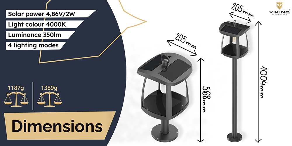 Venkovní solární LED světlo Viking SR10L/350lm /solární napájení / 4000K (denní bílá)/ 4 režimy