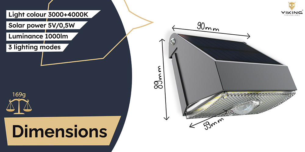 Venkovní solární LED světlo Viking SR11/1000lm /solární napájení /3000K + 4000K (teplá a denní bílá)