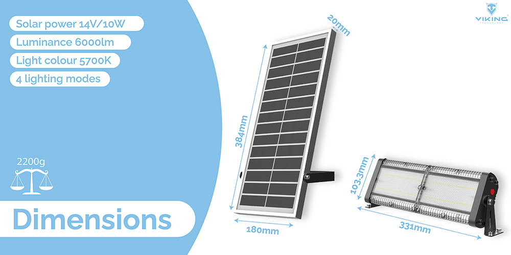 Venkovní solární LED světlo Viking SR40/5000 lm/IP65/4 režimy/studená bílá