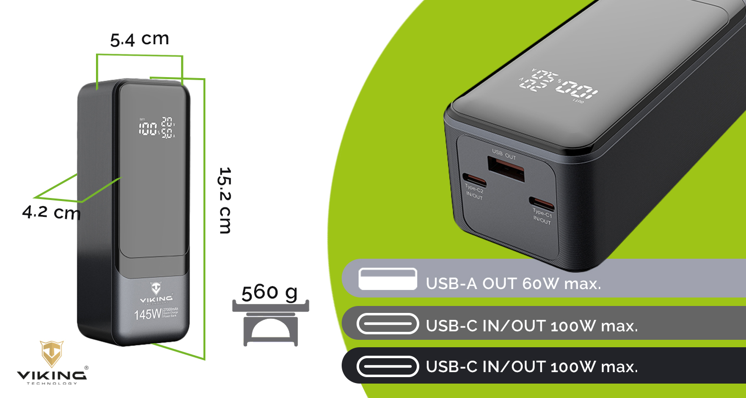Viking PN-964PD 27000 mAh/Output:1xUSB-A,2xUSB-C/Input:2xUSB-C/LED display