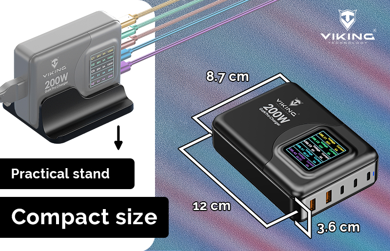 Viking USB GaN charger 200W PD PRO/síťový adaptér/Output:3xUSB-C,2xUSB-A/Rychlo nabíjení/