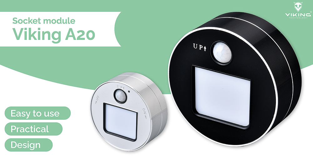 Zásuvkový modul Viking A20B, černá/LED světlo 3W/Pohybový senzor/230V,16A,50Hz